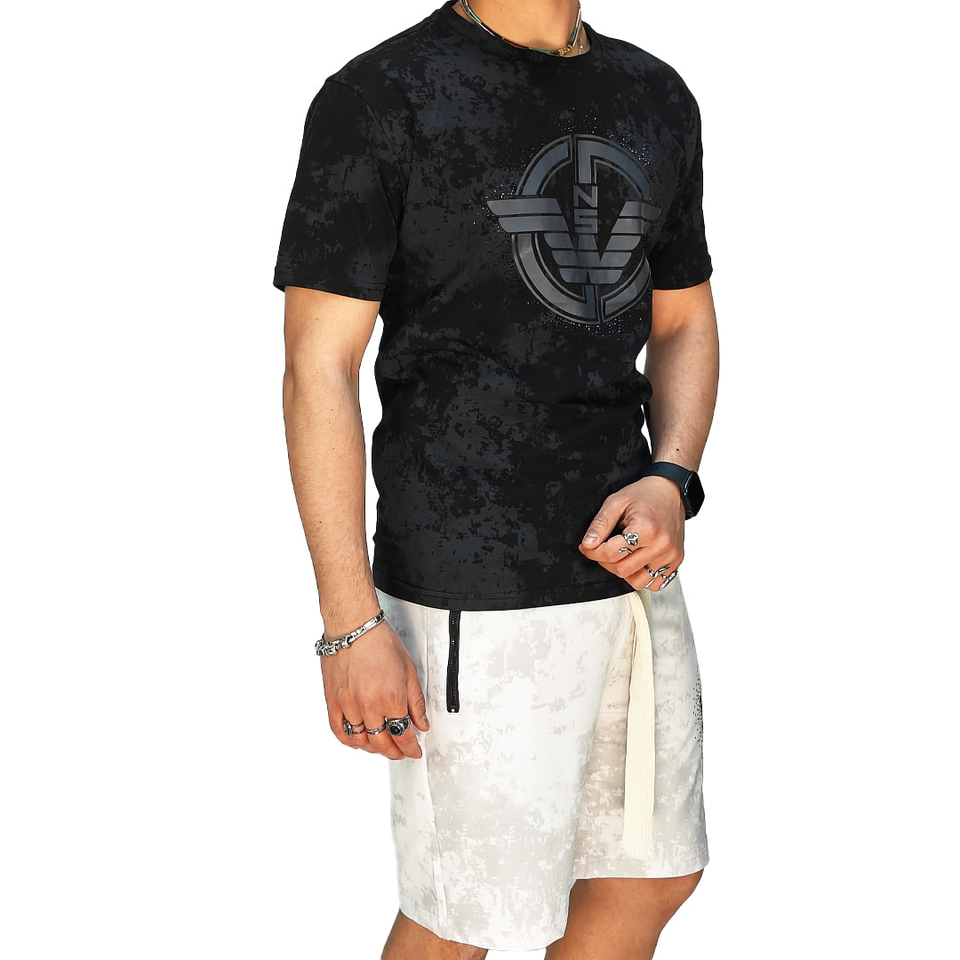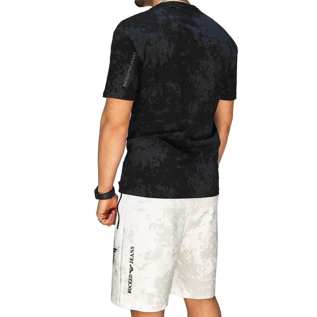 Stile urbano e comfort assoluto per i tuoi outfit estivi. Questo completo da uomo, composto da t-shirt a manica corta e bermuda coordinati, รจ lโideale per chi cerca un look moderno e dinamico, senza rinunciare alla qualitร .